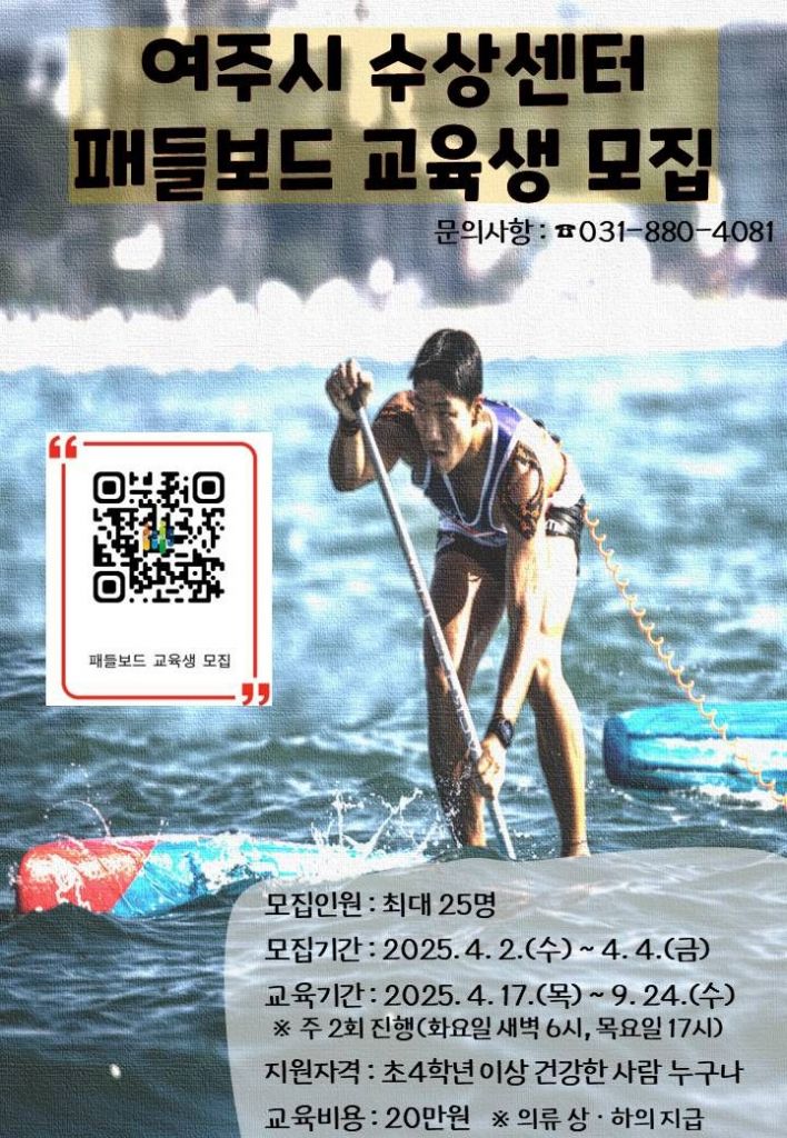제4기 패들보드 교육생 모집 포스터. 여주도시공사 제공