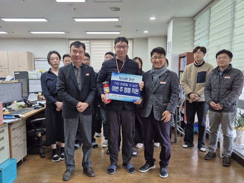 이번 청렴 릴레이는 강건선 기획실장이 직접 해당 부서를 방문해 ‘이번 주 청렴 직원’에게 청렴 피켓과 청렴 소화기를 전달했다.