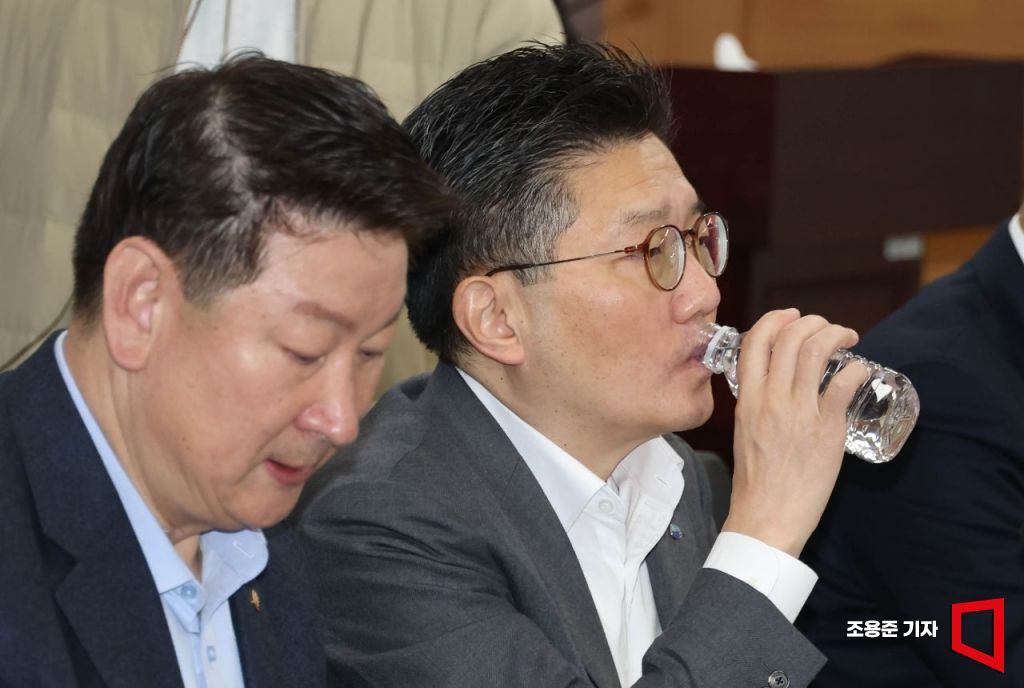 20일 서울 종로 정부서울청사에서 열린 저축은행 역할 제고를 위한 간담회에 참석한 송철호 드림저축은행 대표가 물을 마시고 있다.