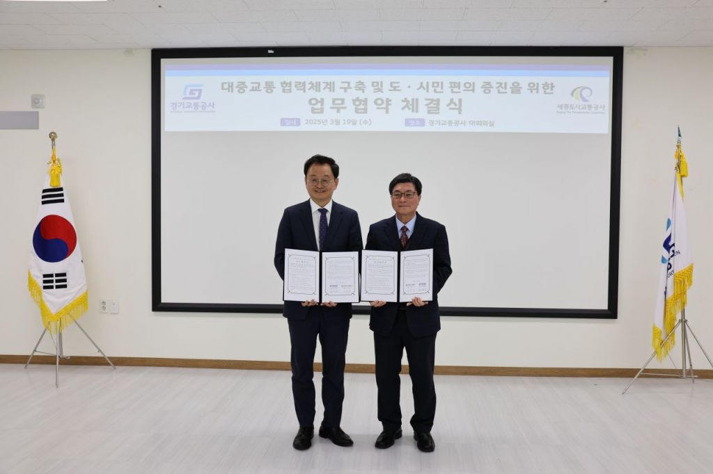 경기교통공사(사장 민경선)는 지난 19일 세종도시교통공사(사장 도순구)와 ‘대중교통 협력체계 구축 및 도·시민 편의 증진을 위한 업무협약’을 체결했다고 20일 밝혔다.