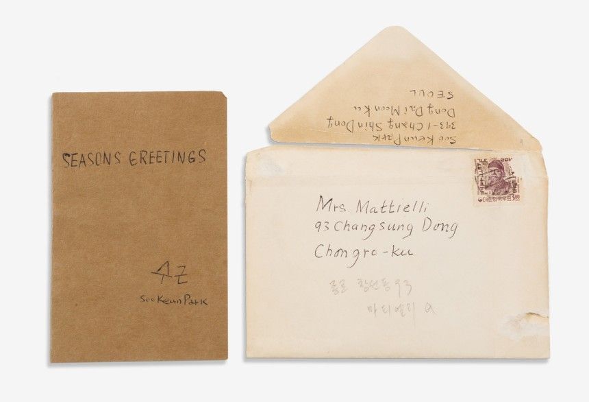 연하장은 1962년 연말에 박수근이 산드라 마티엘리 씨에게 보낸 것으로, 겉면에 '수근 Soo Keun Park'이라는 친필 서명이 적혀 있다. 미국인 소장가 로버트 마티엘리(100) 씨와 고(故) 산드라 마티엘리(1931∼2024) 부부가 최근까지 소장하다 지난달 한국으로 돌아왔다.