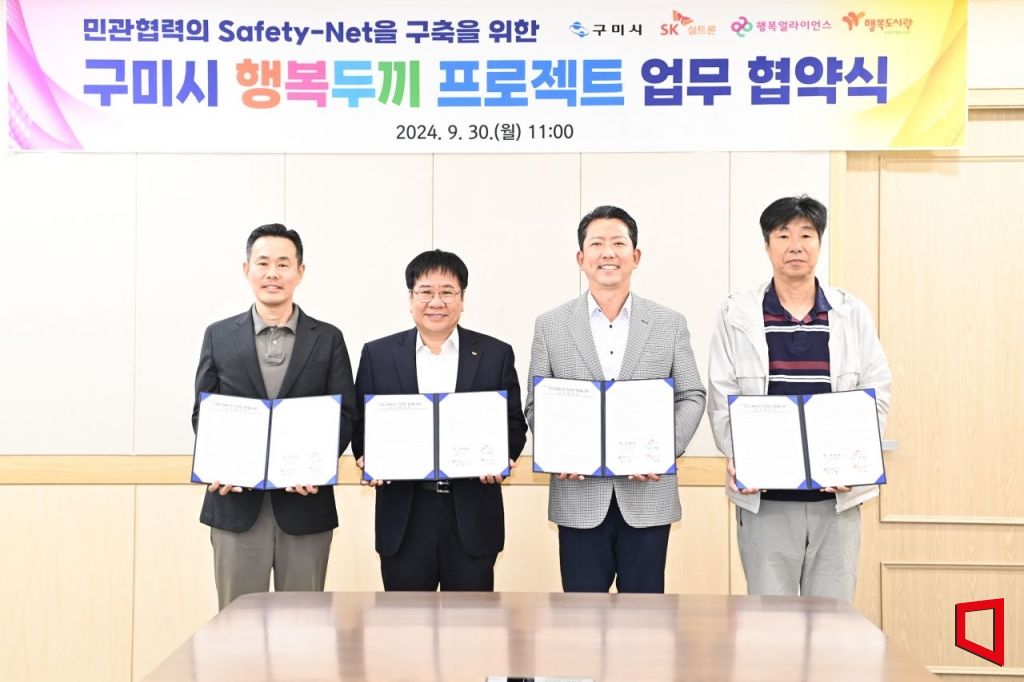 김장호 구미시장이 2024년 9월 30일 구미시와 SK실트론(주), 행복나래(주), 사회적협동조합 행복도시락이 맺은 업무협약식 이다.