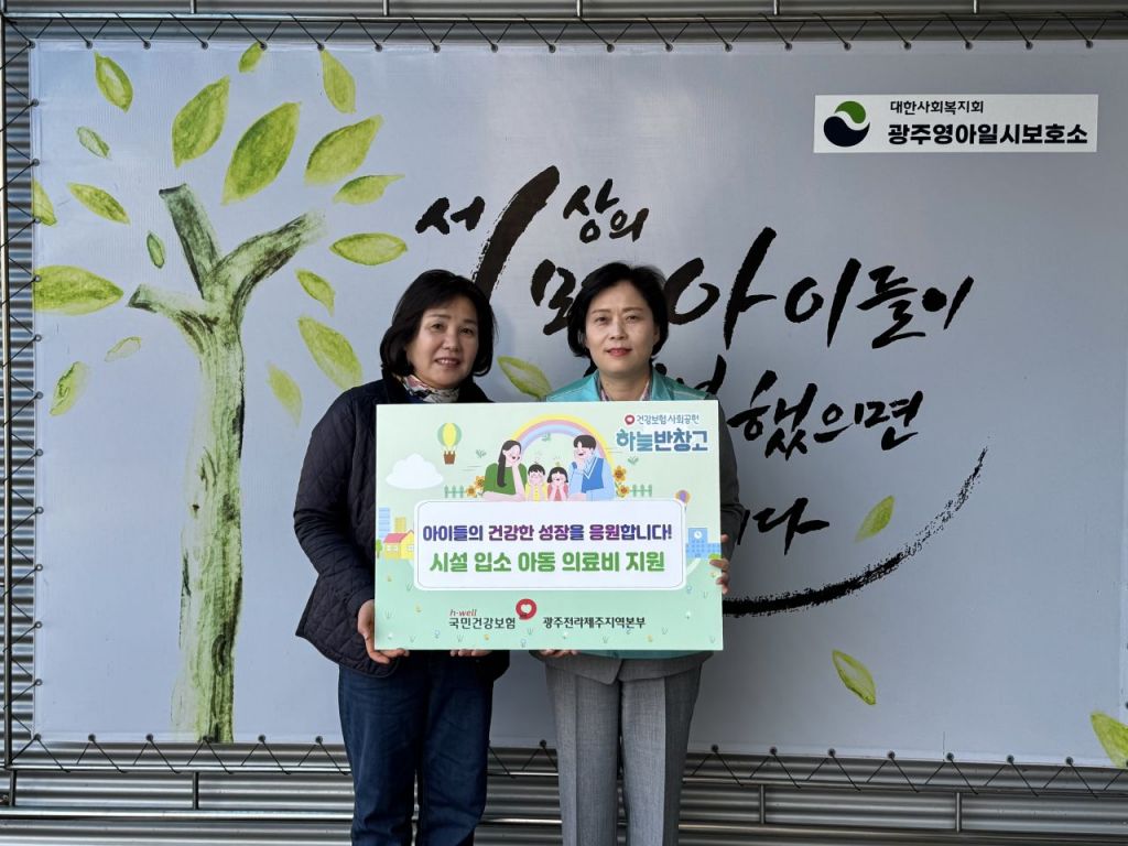 국민건강보험공단 광주전라제주지역본부가 지난 20일 소태동에 위치한 광주영아일시보호소에 방문해 '시설 입소 아동 의료비 지원금' 전달식을 실시했다. 국민건강보험공단 광주전라제주지역본부 제공