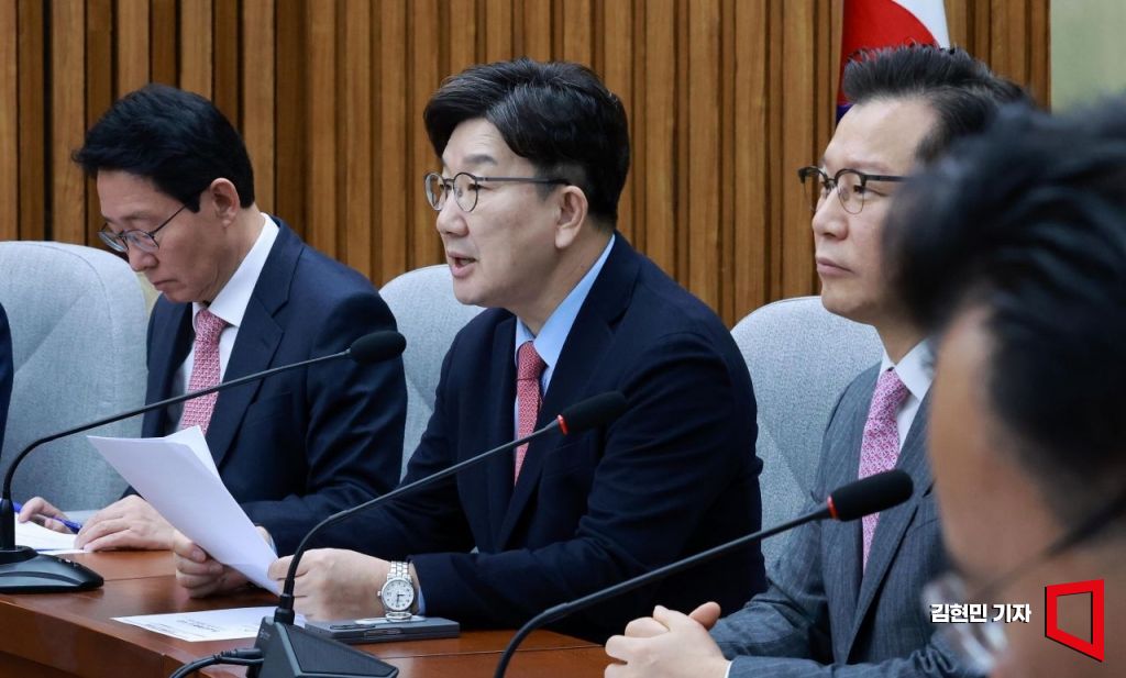 권성동 국민의힘 원내대표가 21일 국회에서 열린 원내대책회의에서 발언하고 있다.