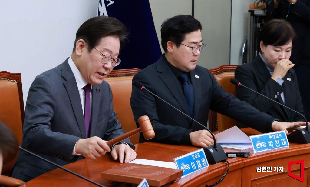 이재명 더불어민주당 대표가 21일 국회에서 열린 최고위원회의를 주재하고 있다.