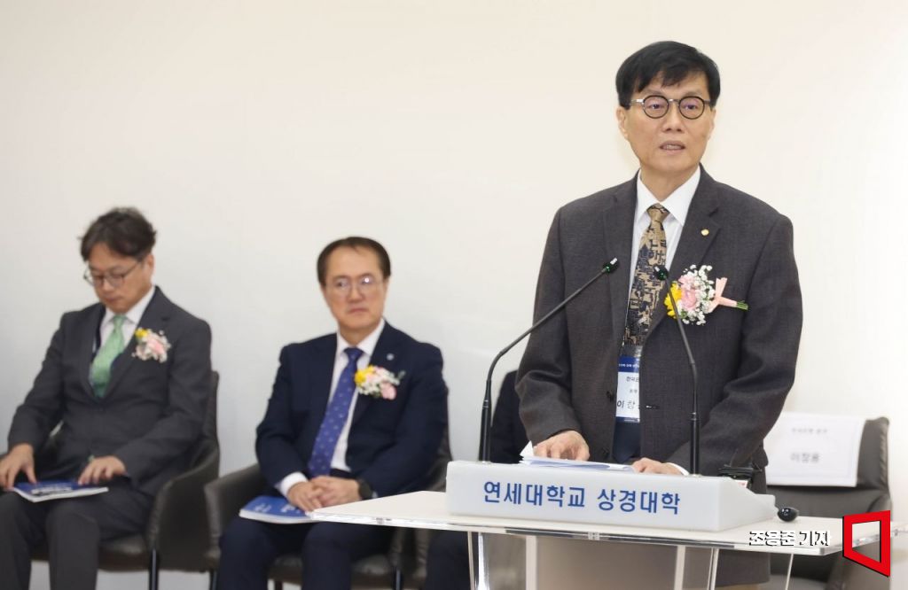 이창용 한국은행 총재가 21일 서울 연세대 대우관 각당헌에서 열린 인구와 인재 연구원 개원 컨퍼런스에 참석, 축사를 하고 있다.