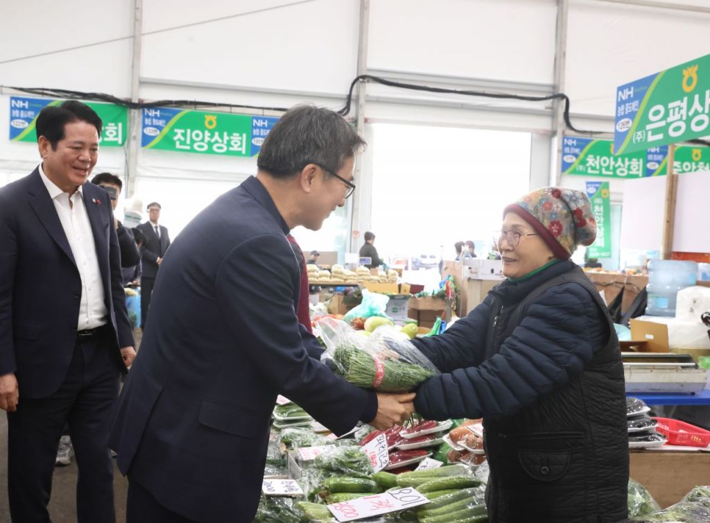 한편 이날 김 지사 방문 장소에서는 NH농협은행이 상인들로부터 구입한 5억원 상당의 야채와 청과 150t을 경기사회복지공동모금회에 기부하는 전달식도 열렸다. 기부 물품은 경기광역푸드뱅크에 지정 기탁돼 도내 취약계층 1만5000가구에 전달된다.