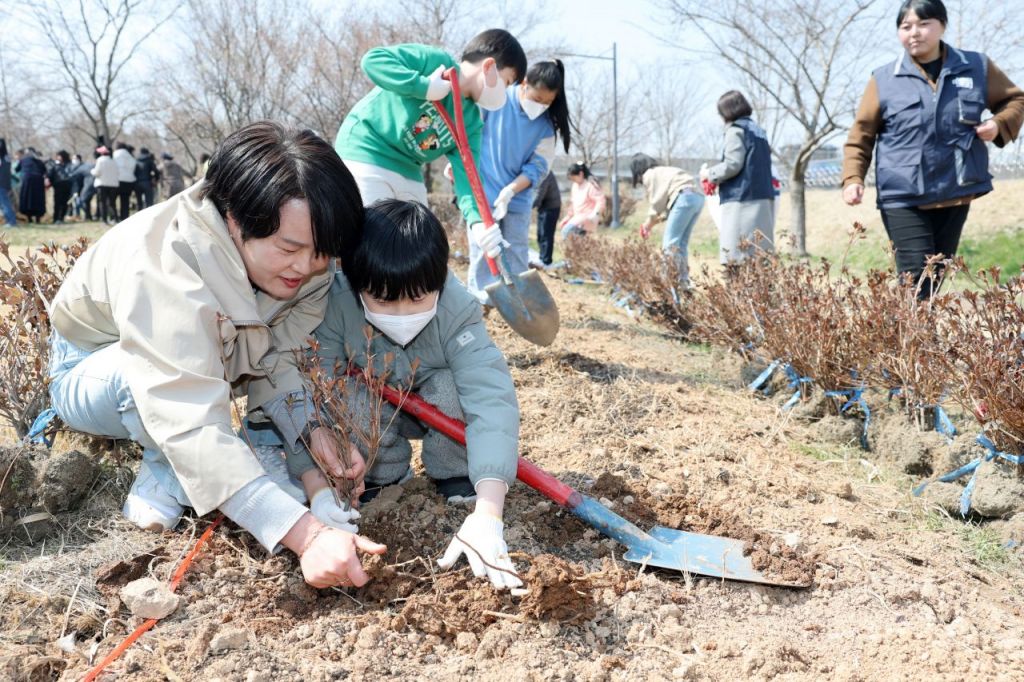 광주 광산구 첨단2동이 21일 첨단2동 생태광장에서 ‘민생 약속의 희망나무 심기’ 행사를 열고 은목서 등 1,700여주를 심었다. 이날 행사에는 지역사회단체, 어린이집 원아, 주민 등 200여 명이 참여해 나무 심기와 함께 가족 단위 팻말 만들기, 기후변화 대응 캠페인 등을 진행했다. 광주 광산구 제공