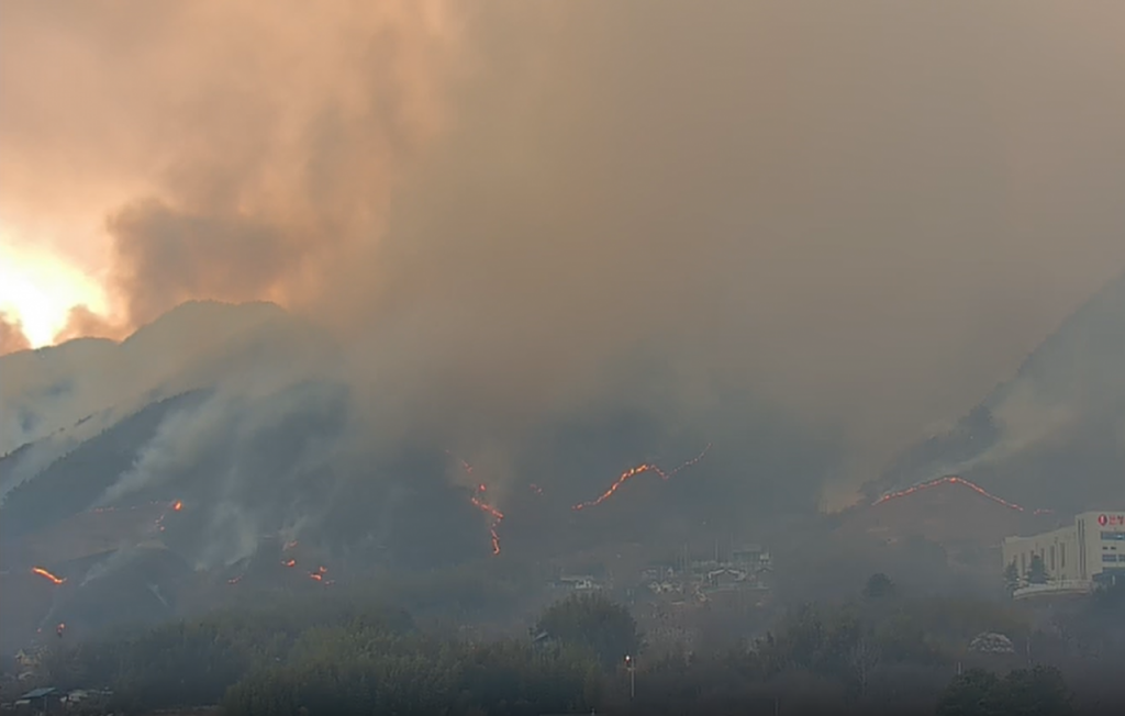 바람을 타고 산불이 번지면서 송하, 내공, 외공, 중태, 후평, 반천, 불계, 신천 등 8개 마을 주민과 등산객에게는 추가 대피령이 내려졌다.
