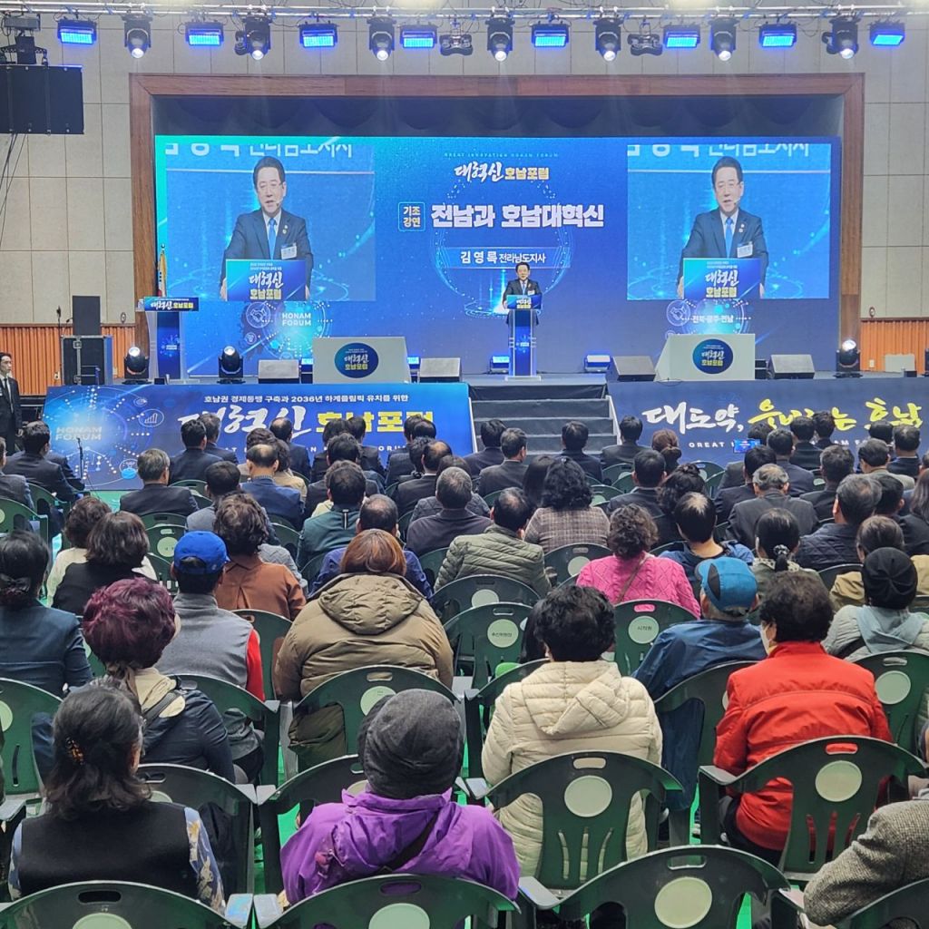 전라남도, 광주광역시, 전북특별자치도는 23일 나주종합스포츠파크에서 2036 전주 하계올림픽 성공 유치 기원과 호남권 메가시티 경제동맹 강화를 위한 '대혁신호남포럼' 행사를 진행됐다.