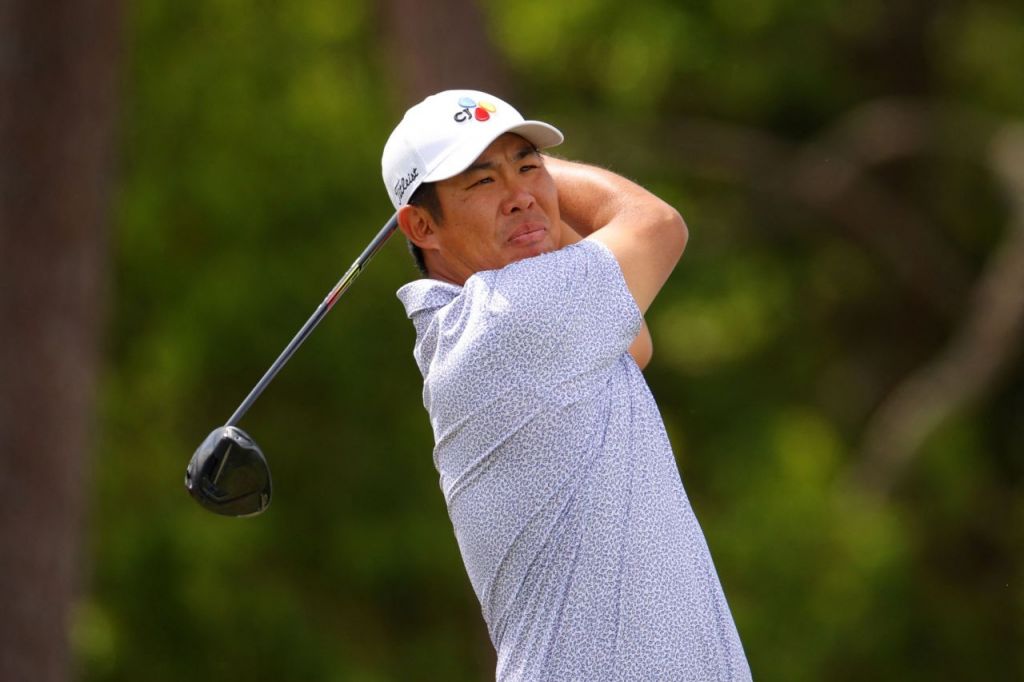안병훈이 발스파 챔피언십 4라운드 1번 홀에서 티샷을 하고 있다. 팜하버=AFP·연합뉴스