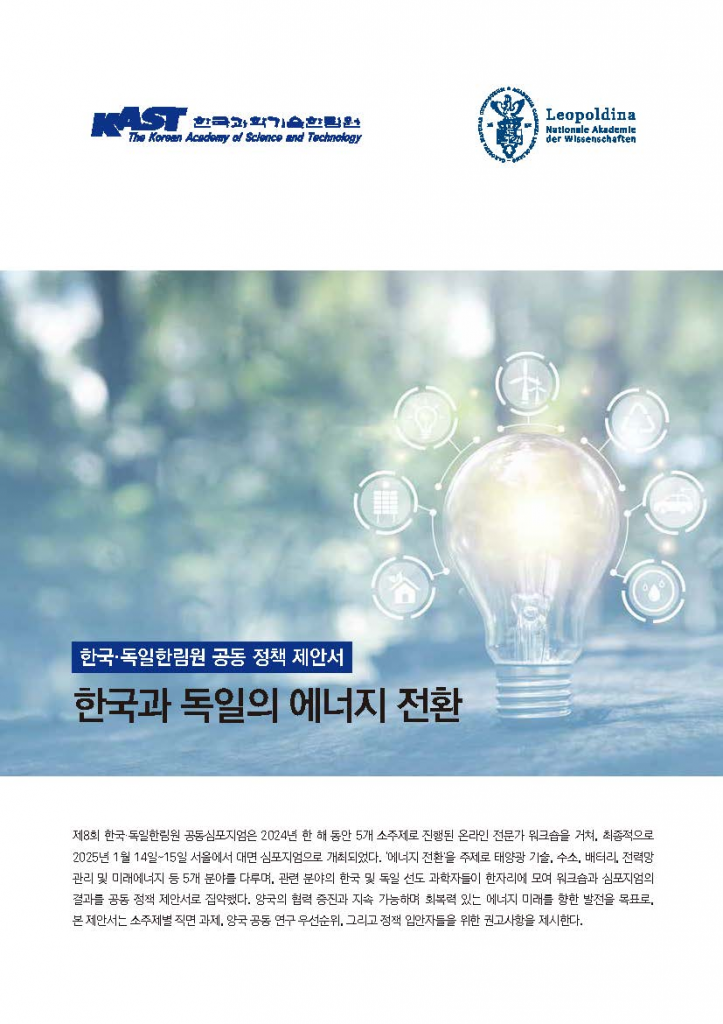한국과학기술한림원과 독일레오폴디나한림원은 이런 내용의 공동 정책 제안서 '한국과 독일의 에너지 전환(Navigating the Energy Transition in Korea and Germany)'을 24일 발간했다.