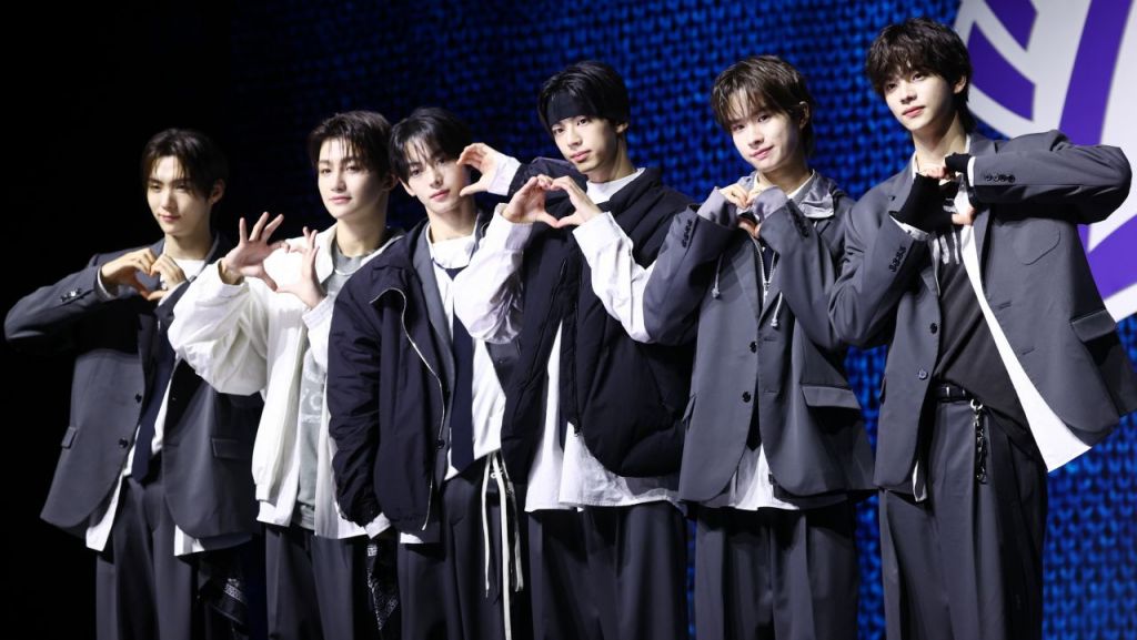 그룹 투어스(TWS)가 2024년 11월 첫 싱글 '라스트 벨(Last Bell)' 발매 쇼케이스에서 포즈를 취하고 있다. 연합뉴스