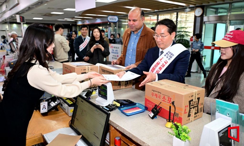 유정복 인천시장과 김꽃마음 경인지방우정청장은 협약식을 마친 후 남인천우체국으로 이동해 외국인들과 함께 '아이(i) 글로벌 택배'의 제1호 상자를 직접 포장해 발송하며 사업의 시작을 알렸다.
