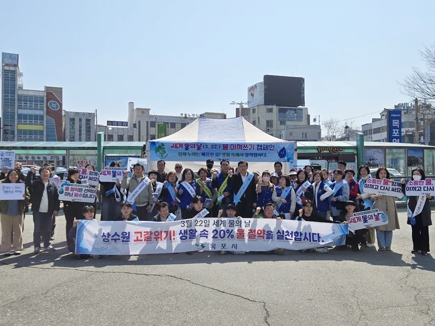 전남 목포시(시장 박홍률)는 최근 목포역 광장에서 바르게살기운동 시 협의회, 환경운동연합, 맑은물사업단 직원 등 50여명이 참여한 가운데 물 절약 캠페인을 실시했다고 24일 밝혔다.