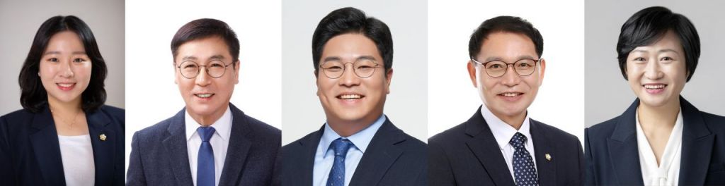 왼쪽부터 강한솔·정재봉·박해원·김영선·한윤희 의원. 광주 광산구의회 제공