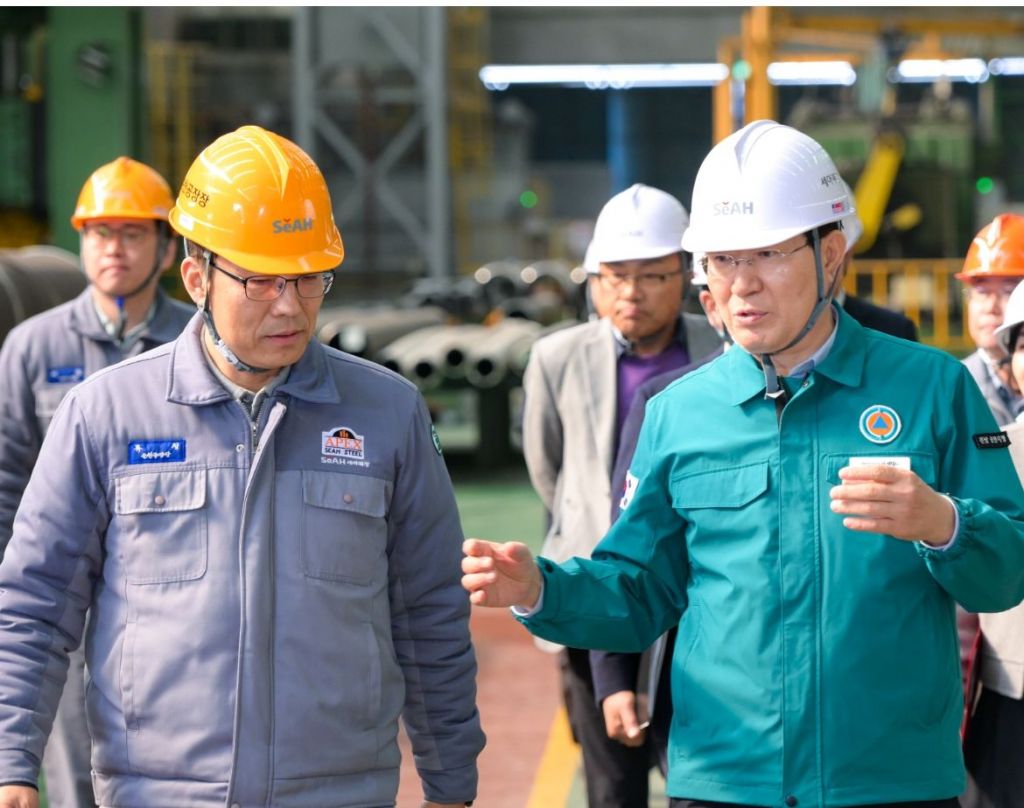 노관규 순천시장이 지난 17일 율촌산단에 위치한 (주)세아제강 기업을 방문해 애로사항 등을 청취하고 있다. 순천시 제공
