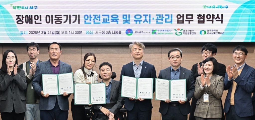 서구가 24일 서구청 3층 나눔홀에서 장애인 이동기기 안전교육 및 유지·관리 업무 협약식을 진행했다. 광주 서구 제공