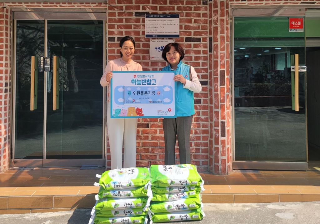 국민건강보험공단 부산사하지사가 애아원을 찾아 후원물품을 전달하고 있다. 국민건강보험공단 제공