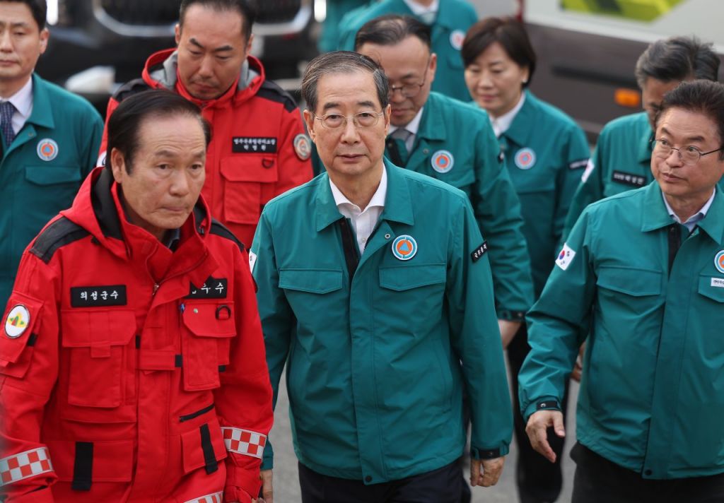 한 대행은 산불현장통합지휘본부에서 산불 특수 진화대, 소방관, 지방자치단체 공무원 등을 격려한 뒤 의성체육관에 마련된 주민대피소를 찾아 산불 피해 주민들을 위로했다.