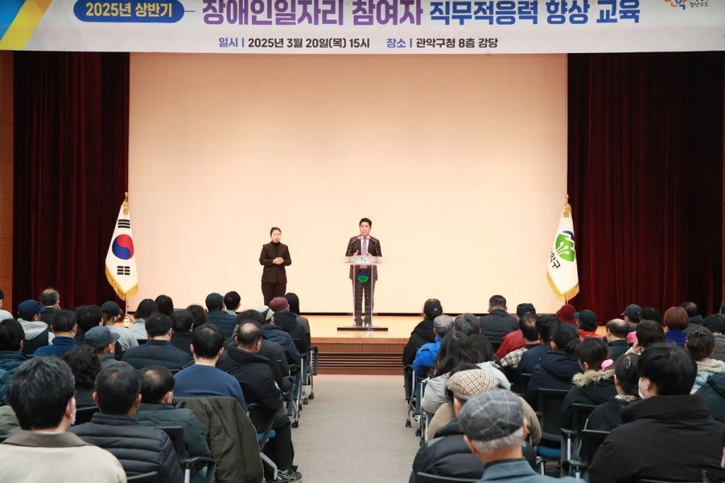 관악구(구청장 박준희)가 지난 20일 장애인 일자리 참여자를 대상으로 직무 적응력 향상을 위한 맞춤형 교육을 실시했다.