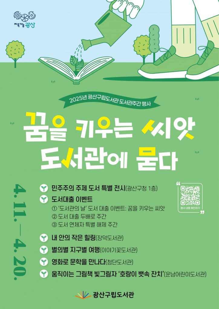 도서관주간 프로그램은 도서관별로 선착순 모집하며, 행사 일정과 신청 방법은 광산구 도서관 누리집에서 확인할 수 있다. 관련 문의는 광산구 교육도서관과로 하면 된다.