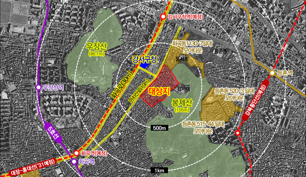 강서구 화곡동 대상지의 경우 노후·불량 건축물이 밀집하고 도로 협소 등 문제가 나타났다. 하지만 공항시설법에 따른 높이 제한 등으로 재개발이 어려웠는데 2022년 하반기 공모를 통해 모아타운 대상지 선정됐다.