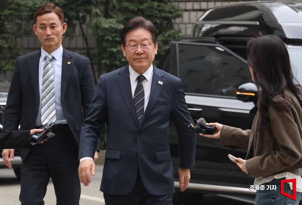 이재명 더불어민주당 대표가 25일 서울 중앙지방법원에서 열린 위례·대장동·백현동·성남FC 사건 1심 공판에 출석하고 있다.