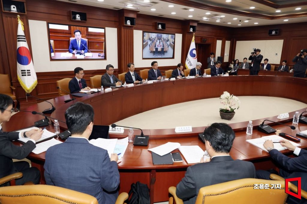 최상목 경제부총리 겸 기획재정부 장관이 25일 서울 종로구 정부서울청사에서 열린 공급망안정화위원회에 참석, 차량 요소수, 핵심광물 등에 대해 발언하고 있다.