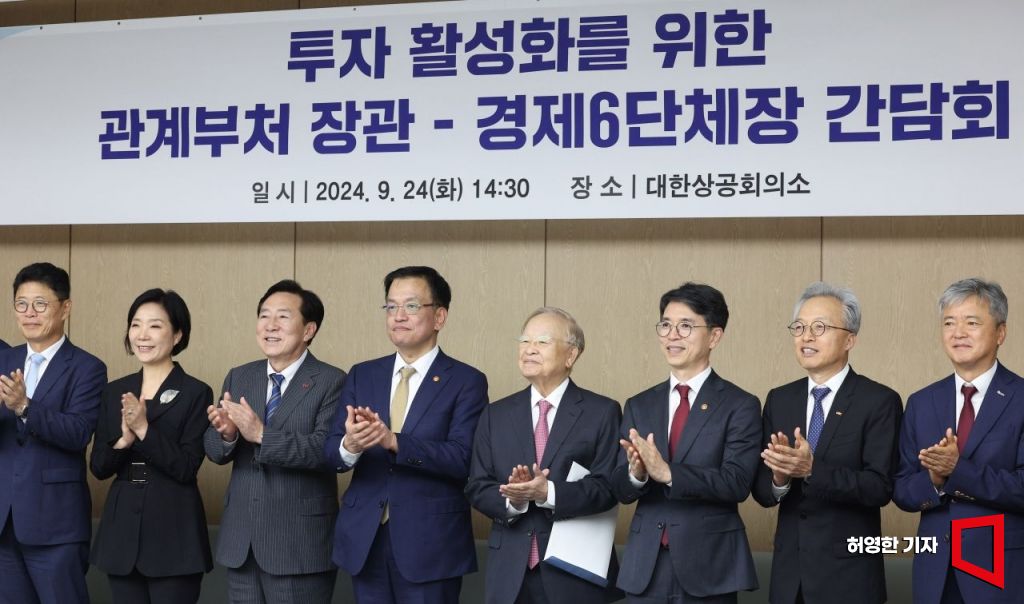 손경식 한국경영자총협회 회장이 24일 오후 서울 중구 대한상공회의소에서 열린 '투자활성화를 위한 관계부처 장관 - 경제6단체장 간담회'에서 모두발언하고 있다. 사진=허영한 기자 younghan@
