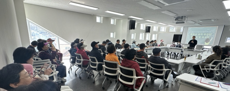 책정원 도서관에서 열린 지한중학교 유치 추진단 발대식에 참석한 광주 동구 주민들이 추진 방향을 공유하고 있다.