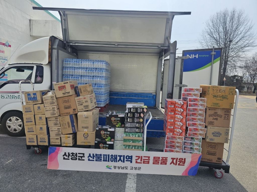 경남 고성군은 산청군에서 발생한 대형 산불로 큰 어려움을 겪고 있는 이재민을 지원하기 위해 긴급 구호 물품을 전달했다.