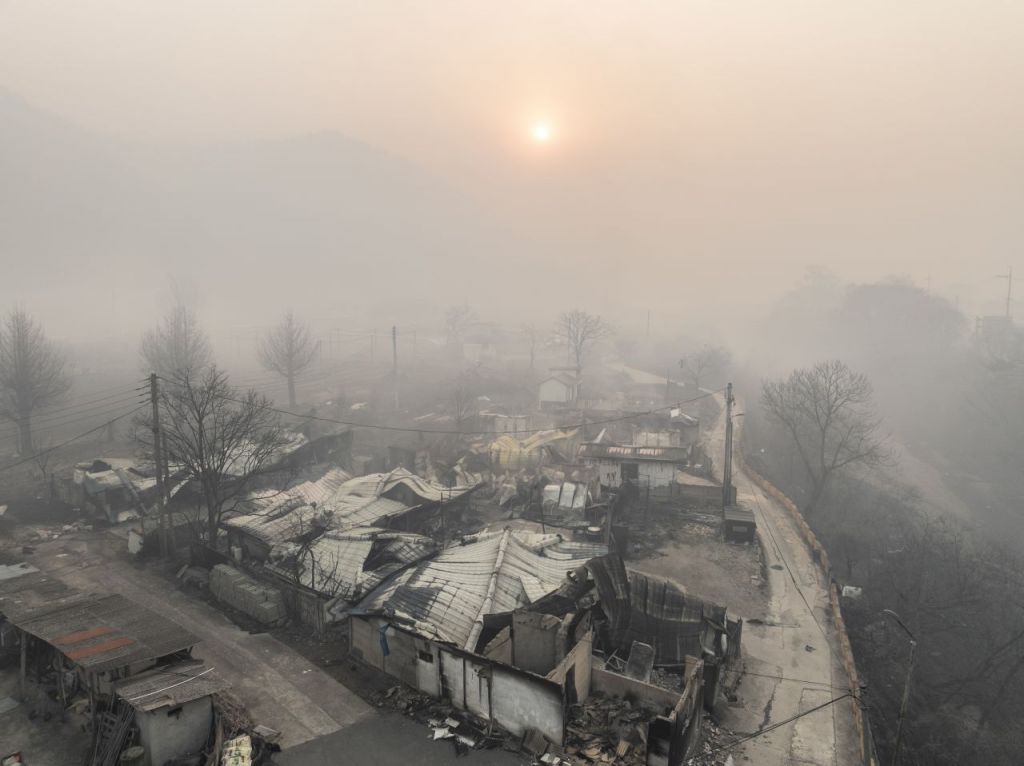 26일 경북 영양군 석보면 화매1리 계곡 마을이 산불에 초토화돼 있다. 연합뉴스