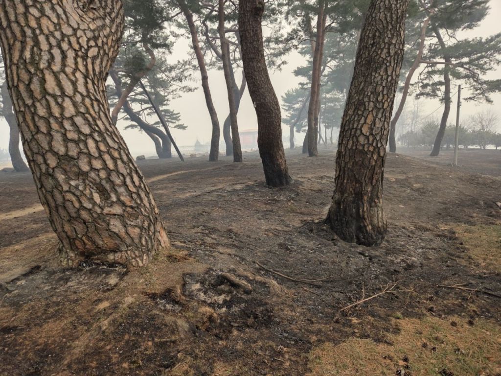 산불 피해를 본 안동 백운정 및 개호송 숲 일원