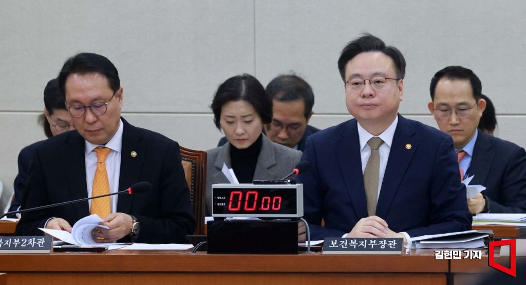 조규홍 보건복지부 장관(오른쪽)과 박민수 2차관이 지난달 14일 국회에서 열린 보건복지위원회 전체회의에 참석하고 있다. 김현민 기자