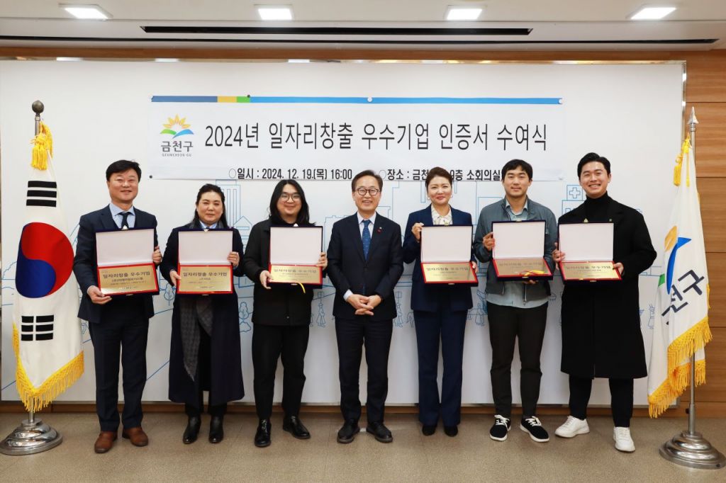 ‘일자리창출 우수기업 인증제’는 고용 증가율과 금천구민 채용 실적, 기업의 복리후생 제도를 평가해 우수기업으로 인증하는 제도다. 우수기업에는 인증서와 현판을 수여, 금천구 주민고용보조금을 우선 지원한다. 또한 해외박람회와 첨단산업 전시회 참가, 중소기업 육성자금 융자 지원 시 가점을 부여한다.