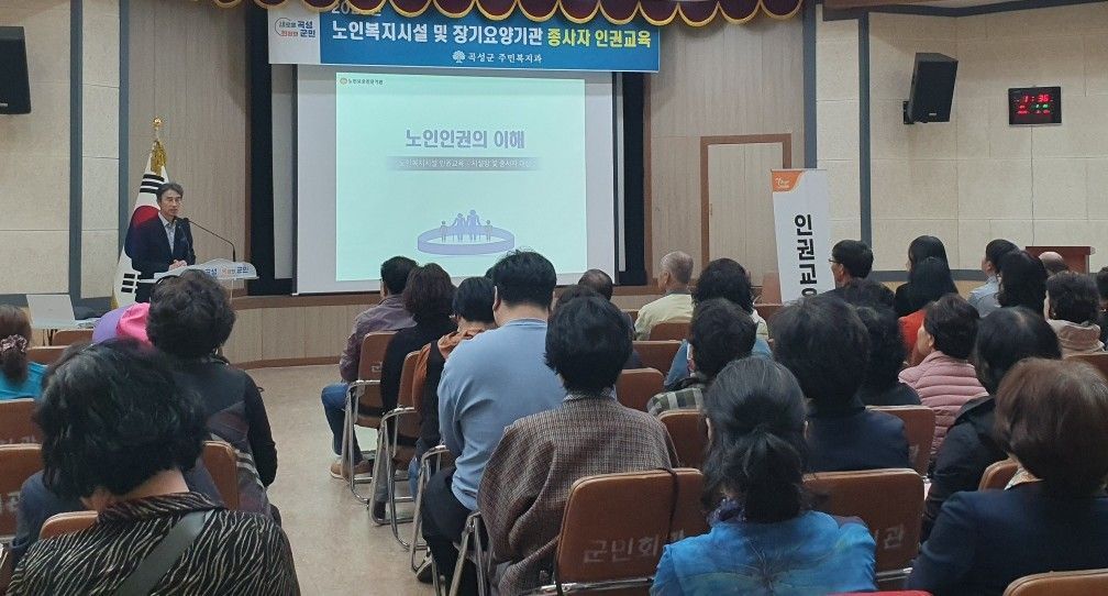 곡성군은 지난 25일 군민회관 참여 마당에서 노인복지시설 및 장기 요양기관 종사자 100여명을 대상으로 인권 교육을 실시했다. 곡성군 제공