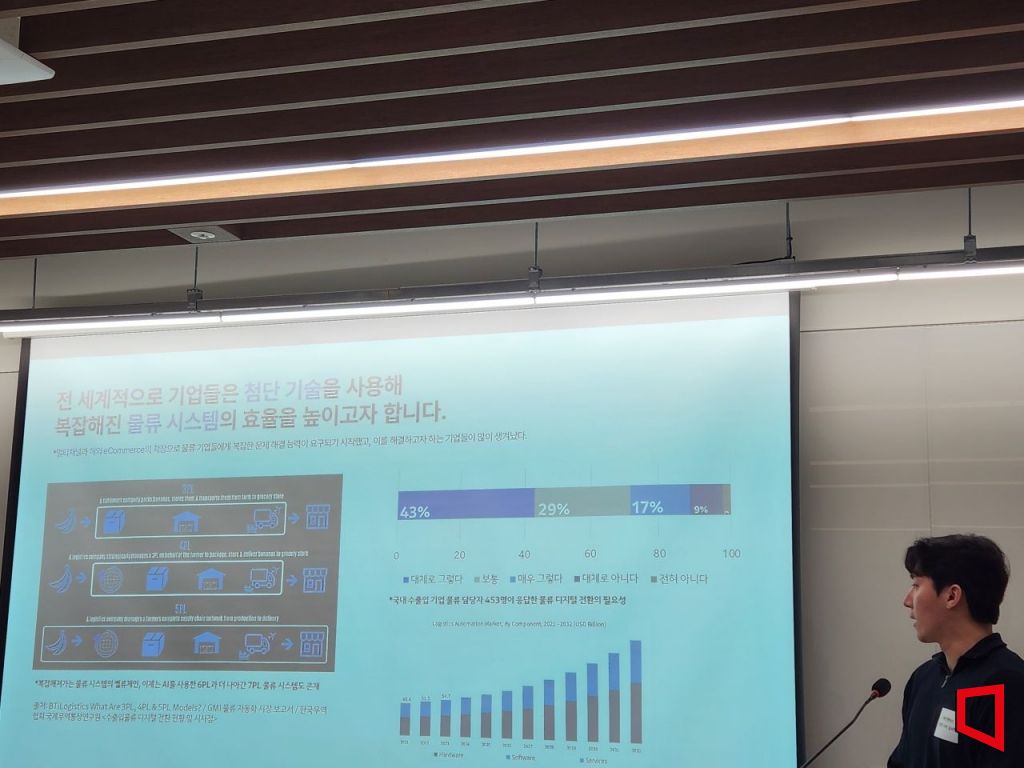 27일 서울 강남구 마루360에서 열린 카카오벤처스 브라운백 미팅에서, 신정호 카카오벤처스 선임심사역이 물류 산업 관련 투자 방향성을 설명하고 있다. 김대현 기자