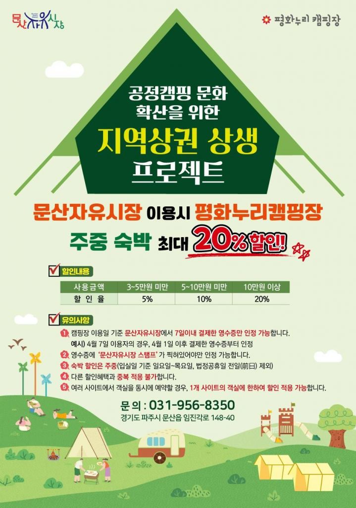 문산자유시장에서 일정 금액 이상 구매한 후 스탬프가 찍힌 영수증을 지참하면, 평화누리캠핑장 주중 숙박요금을 최대 20%까지 할인받을 수 있다.