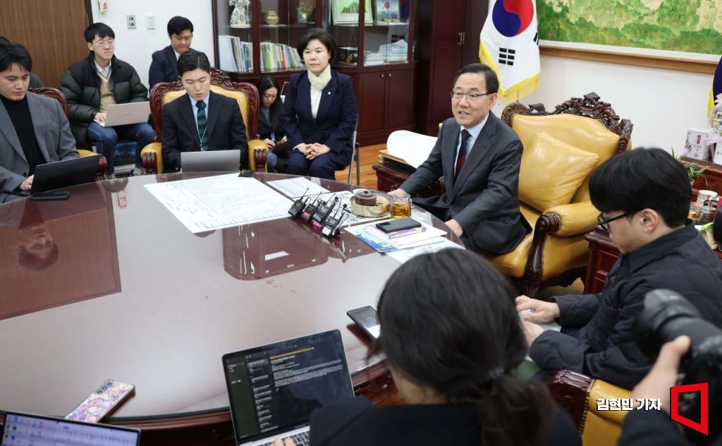 국민의힘 헌법개정특별위원회(개헌특위) 위원장을 맡은 주호영 국회 부의장이 4일 국회 집무실에서 첫 회의 내용에 대해 설명하고 있다. 2025.3.4 김현민 기자