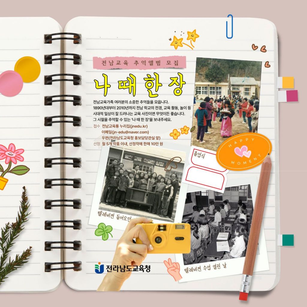 이형래 홍보담당관은 “세월이 지나도 학창 시절의 기억은 오래도록 마음속에 남아있는 소중한 추억”이라며 “이번 공모전이 전남교육 가족들의 추억을 공유하고 세대 간 공감과 대화의 매개체가 되길 바란다”고 말했다.