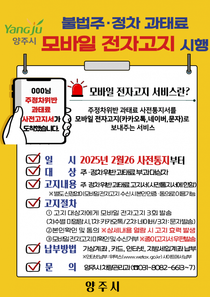 ‘모바일 전자고지 서비스’ 전면 시행 안내문. 양주시 제공