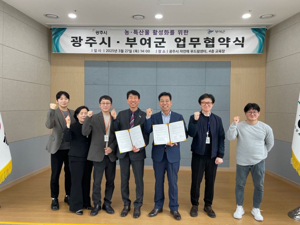 그동안 양 기관은 광주시 자연채 푸드팜센터에 부여군 농·특산물을 진열, 판매하기 위해 여러 차례 사전 협의와 간담회 등을 진행하며 지속적인 협력관계를 구축해 왔다.
