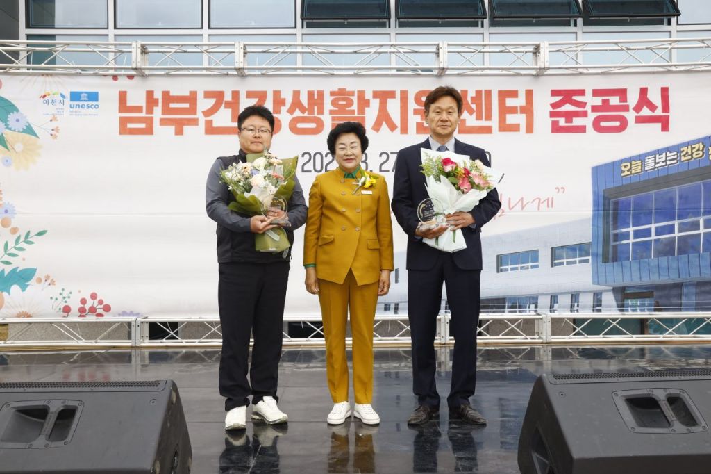 김경희(가운데) 이천시장이 27일 '남부건강생활지원센터' 준공식에서 센터 개관을 축하하고 있다. 이천시 제공