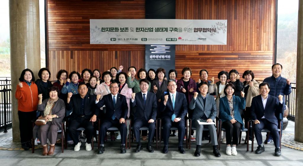 시와 한솔제지는 27일 전주천년한지관에서 우범기 전주시장 등 양 기관 관계자들이 참석한 가운데 ‘한지문화 보존과 한지산업 생태계 구축을 위한 업무협약’을 체결했다.