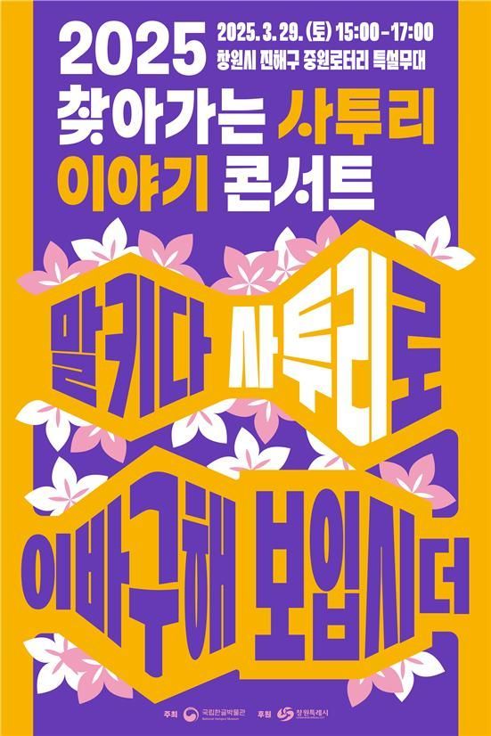 문화체육관광부 국립한글박물관은 29일 창원특례시 진해구 중원로터리 야외 특설무대에서 ‘찾아가는 사투리 이야기 콘서트’를 개최한다고 28일 밝혔다.