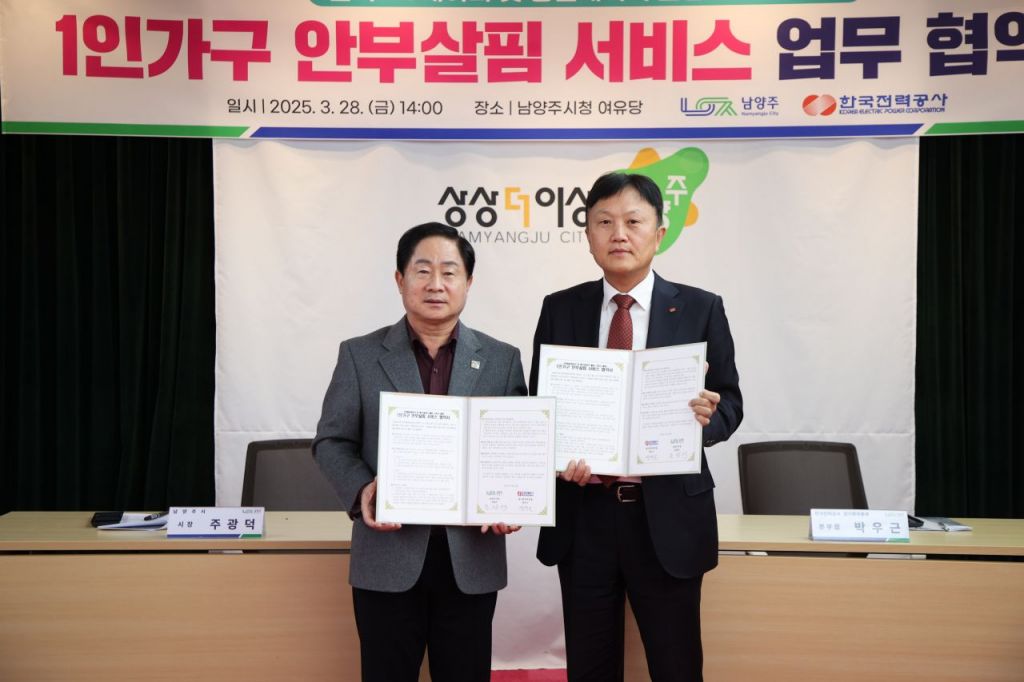 경기 남양주시(시장 주광덕)는 28일 시청 여유당에서 한국전력공사와 ‘1인 가구 안부 살핌 서비스’ 운영을 위한 업무 협약을 체결했다.