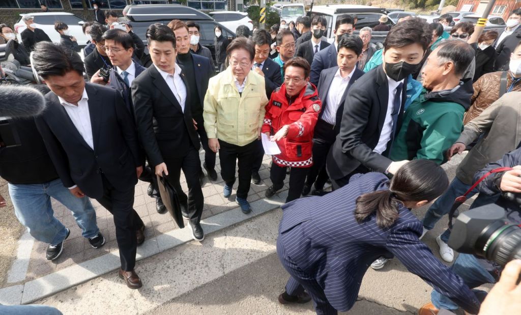 앞서 이 대표는 지난 27일 방문한 경북 영양군 산불 피해 이재민 대피소인 영양군문화체육센터에서는 한 행인으로부터 위협을 당하기도 했다.