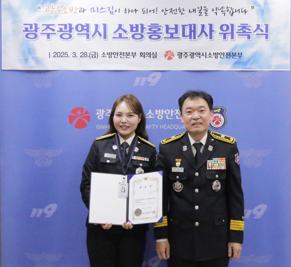 미스김은 앞으로 광주소방의 다양한 홍보 활동에 참여하며 소방정책과 안전 수칙을 알리는 데 앞장선다. ‘명예 소방관 및 소방홍보대사 운영에 관한 규정’에 따라 소방장 계급으로 위촉돼 향후 2년간 소방 홍보대사로서 각종 안전 캠페인, 홍보 콘텐츠 제작 등에 참여할 예정이다.