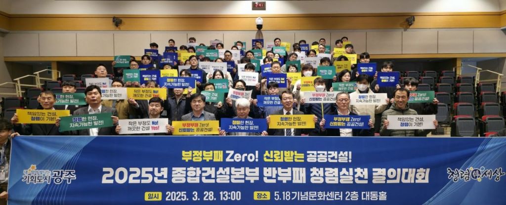 광주시 종합건설본부는 지난 28일 오후 5·18기념문화센터 대동홀에서 본부 직원들이 참석한 가운데 ‘2025년 청렴교육 및 결의대회’를 개최했다고 29일 밝혔다.